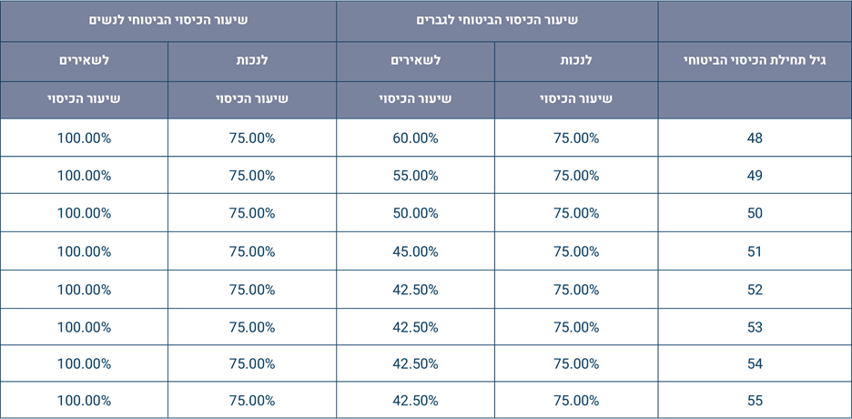 דוגמה נוספת: ב-"מסלול ביטוח 75% לנכות ו-40% לשאירים", יבוטחו העמיתים בשיעור המרבי לכיסוי עבור מקרה נכות ובשיעור המינימלי לכיסוי עבור שאירים בכל גיל הצטרפות.