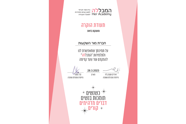 - הקבוצה פועלת בתחום הפיננסי, ואנו רואים אחריות גדולה במתן כלים לעצמאות כלכלית בקרב נשים, לצד קידום שוויון מגדרי בשוק העבודה בתחום.